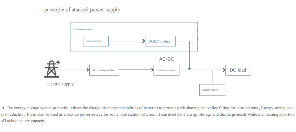 Based on the existing power supply system of the base station,superimposed energy storage system,fully realize the storage at the cheapest electricity price,Release power supply when electricityprices are most expensive,Effectively reduce the peak-valley difference in electricity consumption,and the plan to reduce electricity costs;as follows: