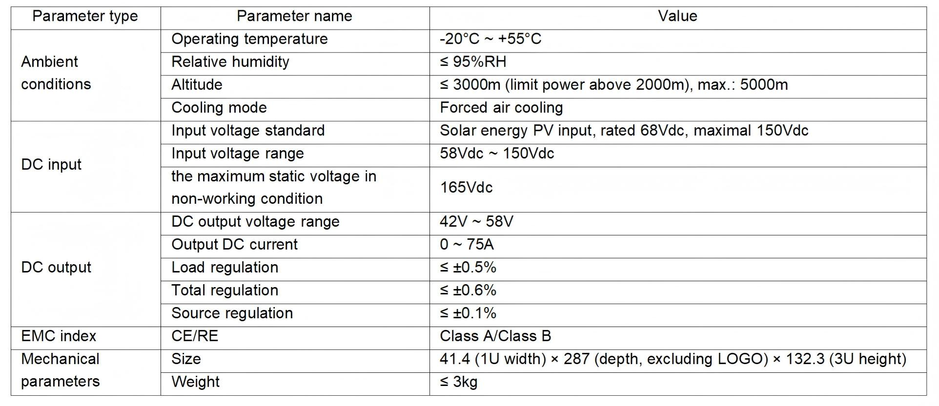 ◆Through the external controller, the output voltage of the solar module can be adjusted between 42V and 58V, and the adjustment accuracy is ±0.1V.