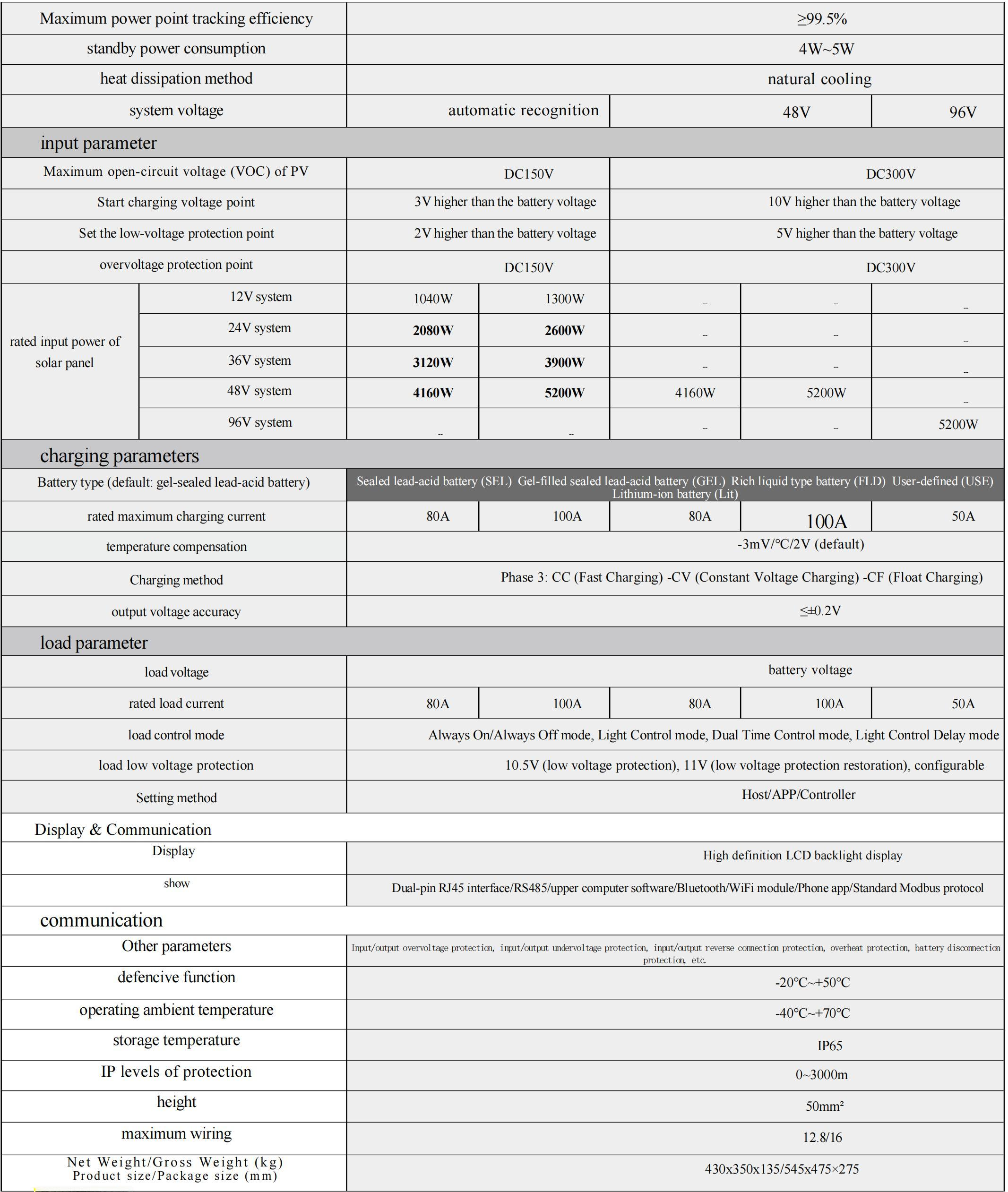1. Efficient MPPT controller algorithm, with MPPT efficiency not less than 99.5% and overall conversion efficiency up to 98%.