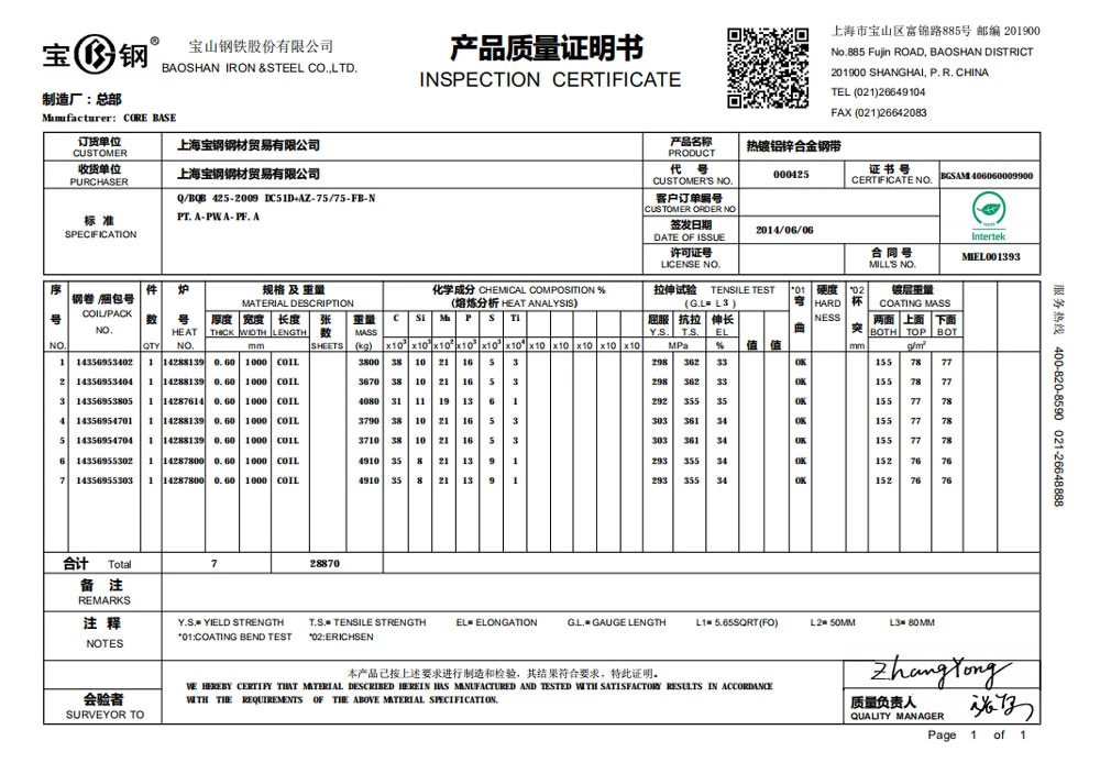Collect the delivery reports and material certificates from supplier,and this can be shipped along with goods if requested.