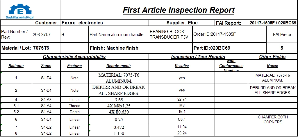 After all parts finish, we will conduct final quality control, and this will be done by the inspection experts in the QC room. At Shanghai Elue,our QC members will utilize height gages, microscopes, 2D projectors, micrometers, and CMM to ensure that the products meet shipping specifications and customer requirements. It includes: visual inspection (color, roughness, burrs, scratches) , dimensions, performance testing if any (physical, electrical, mechanical, operational control).And we will release final inspection report before shipping.